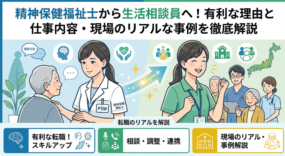 「精神保健福祉士(PSW)の資格を持っているけれど、高齢者介護の分野で『生活相談員』として働くことはできるのかな?」 「医療機関や障害福祉の現場ではなく、介護施設での相談援助に興味があるけれど、自分のスキルは通用するのだろうか?」